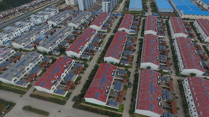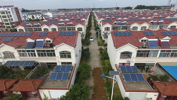 于2014年初竣工,該項目共為該小區(qū)129個家庭安裝了光能的光伏發(fā)電系統(tǒng),總裝機容量為381千瓦,采用自發(fā)自用、余電上網(wǎng)的發(fā)電方式,所發(fā)電量80%由居民使用,剩余20%電量由國家電網(wǎng)收購。該項目開創(chuàng)了中國首個家庭分布式光伏發(fā)電商業(yè)模式,是中國國內(nèi)建成并網(wǎng)的第一個農(nóng)村農(nóng)民住宅小區(qū)“連片屋頂光伏發(fā)電村”項目。